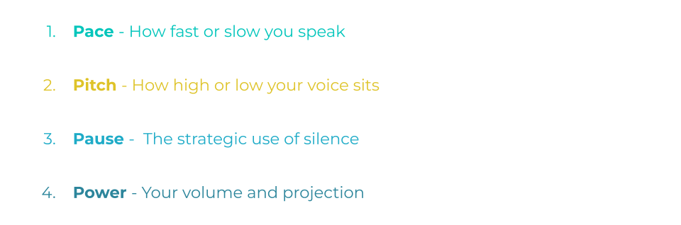 Most of us default to one setting, especially when we’re under pressure. This is when we might slip into common pitfalls such as, rushed delivery, upward inflection or tight breathy tone that can sound quite nasal.