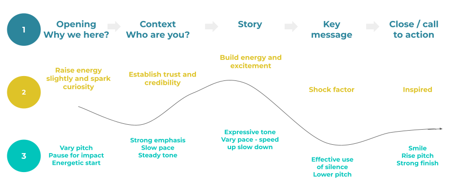 At each stage think: How can I use my pace, pitch, pauses and power to elicit this?